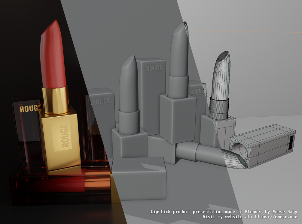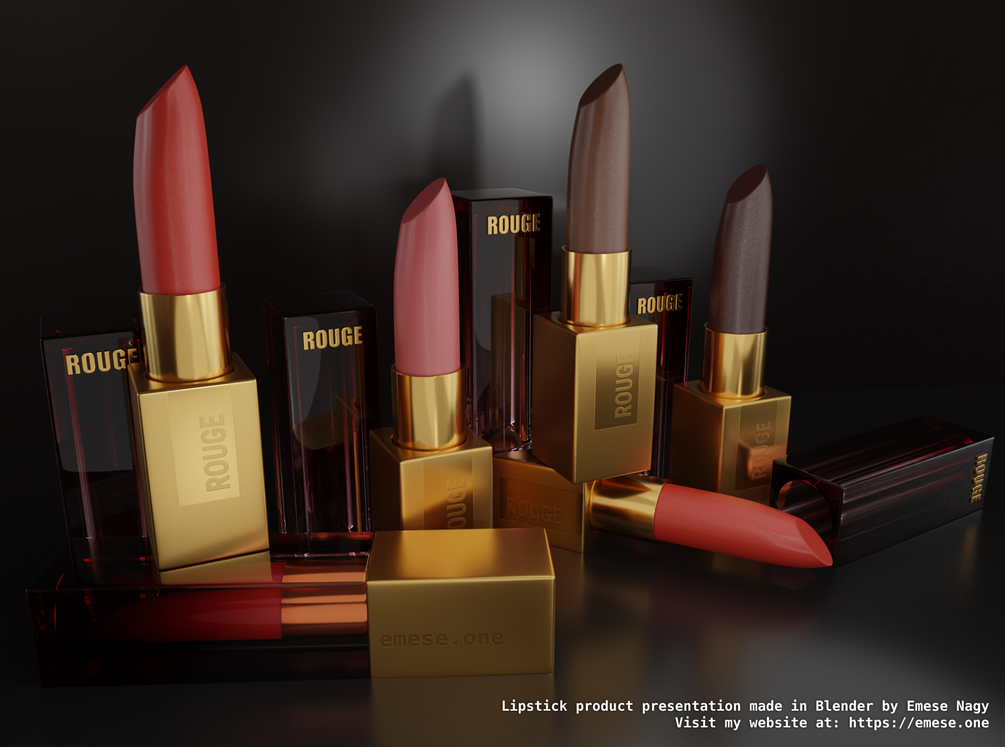 This is high quality 3D model of a lipstick made-up cosmetic brand. The model was made in Blender, scene was composed also in Blender, render engine Cycles.